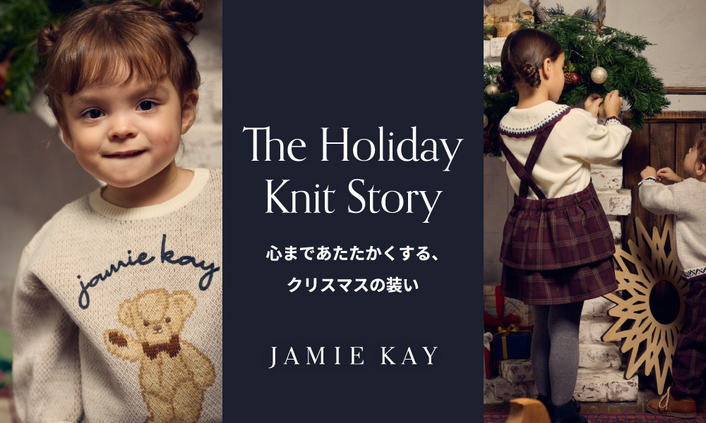 img{ max-width:100%; }} --> 11月12日(水)より2025 Holiday Fairがスタートいたします。 <Holiday Collection> 冬のはじまりに、やさしく包み込むニットを。 JAMIE KAYのホリデーコレクションが登場。 見た目のかわいさはもちろん、 子どもたちが"心地よく動ける"ことにこだわったラインナップです。 軽やかで動きやすく、毎日のあそびにもぴったりな JAMIE KAYベアモチーフのプルオーバーや、 さっと羽織るだけでおしゃれが完成するベビーポンチョとキッズカーディガンに、 サスペンダースカートやウールパンツを合わせて。 姉妹兄弟でのお揃いにもおすすめです♡ <LIMITED "CHERRY" BOX> 特別なギフトにふさわしい、大きな赤いリボンがついたチェリー柄のBOXを 数量限定でお選びいただけます。 BOX S ¥880(税込) BOX M ¥990(税込) ※BOXご購入の方にはお揃いのショッピングバッグをお付けいたします。 ※ショッピングバッグのみでの販売はございません。 ※なくなり次第、販売終了となります。 色とりどりの素材がつむぐ、ホリデーストーリー。 子どもたちの冬時間を、もっとあたたかく、もっと特別に。 親子で過ごすホリデーに、JAMIE KAYのやさしいぬくもりをおむかえください。