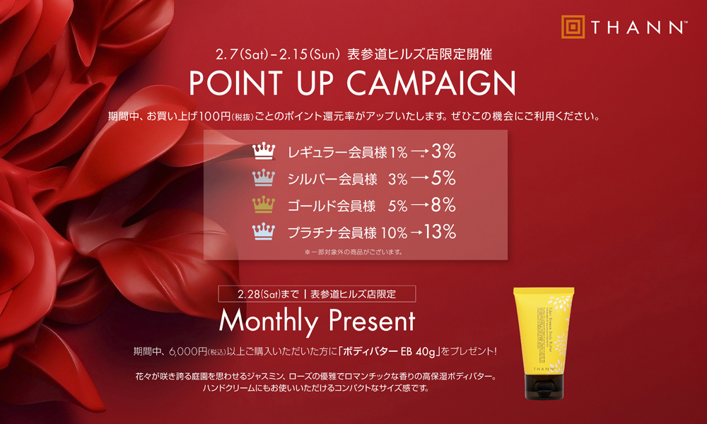 | ヒルズアプリ/ヒルズカード | ヒルズポイント対象/クレジットポイント対象(2%、日曜日は3%) |