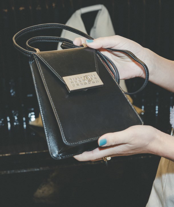 MM6 Maison Margielaならでは新作の“ニューメリック”バッグを真っ先に手に取った百々さん。「私物のバッグと靴はブラックが多いです。このバッグは、私が大好きなミニサイズでありながらデザインやシルバーのナンバリングロゴによって唯一無二。ストラップの長さ次第で印象が変わり、ジュエリー感覚で楽しめそう。ほかに“ジャパニーズ”バッグも持ちやすいので好きです」と、次なるお気に入りを発見。コンセプチュアルでありながら軽量と、機能性もアップデートされ続けているMM6 Maison Margielaのバッグは、しなやかに日常に寄り添ってくれる。