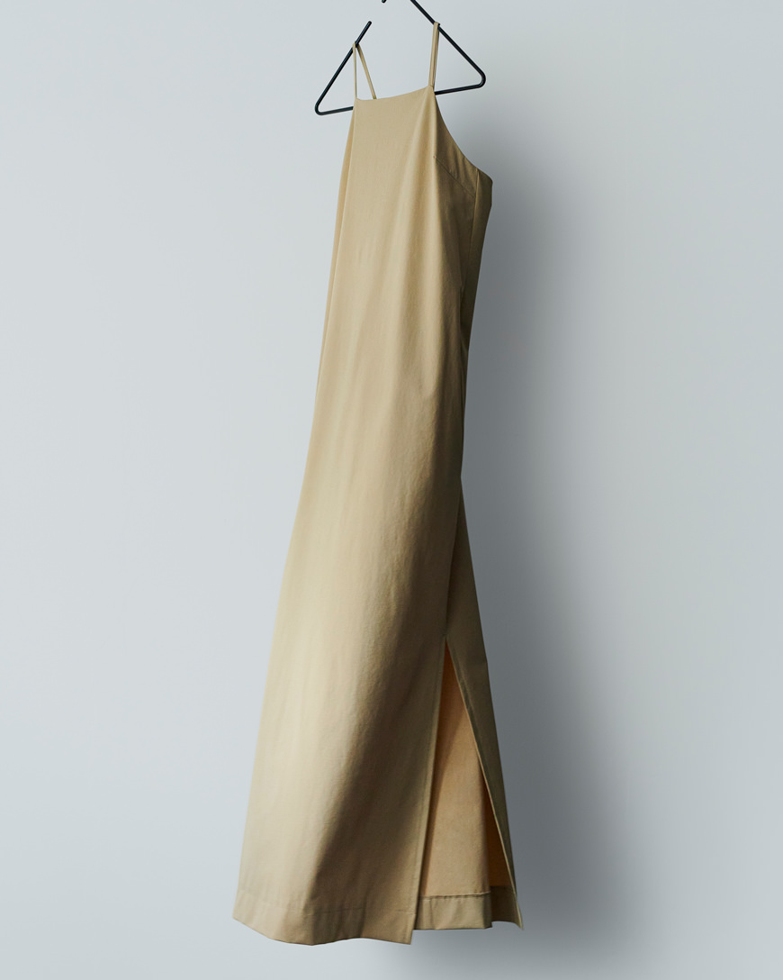 ウォッシャブル、UVカット、撥水、接触冷感、イージーケア機能を搭載したドレスなら、梅雨の時期や暑い夏も快適。キャミソールドレス ¥29,700/styling/(スタイリング/)