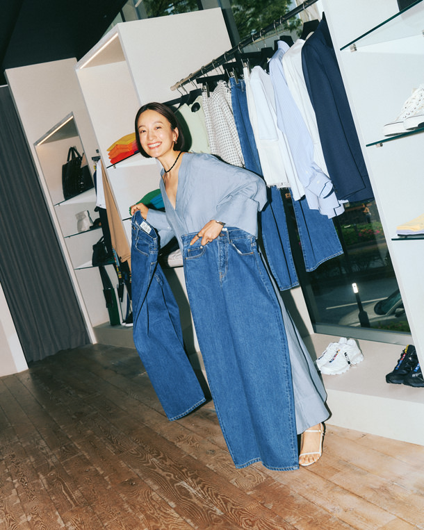 シャープでモダンなセレクトショップフラッグシップストアでもある表参道ヒルズ店が、ミニマリズム、コントラスト、インテリジェンスのキーワードをより体現した空間にてリニューアルオープン。定番で取り扱っていたメゾン マルジェラやジルサンダーに加え、シモーネ ロシャやクレージュなどのラインナップが新たに加わりました。また、バイレードのフレグランスやキャンドル、マグニバーグのタオルやパジャマなどの生活雑貨も充実し、ライフスタイルをトータルで提案。「昔からジーンズやGジャン、オーバーオールなどデニム好きなのでオリジナルのジーンズはよくチェックしています。程よいカーブが美しいバナナシルエットが今の気分です」