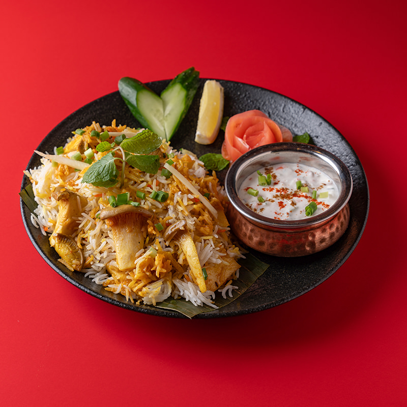 インドの祝祭を彩る伝統料理として愛され、宮廷でも振る舞われてきたビリヤニ。今回の表参道店限定「きのこのビリヤニ」は、素材の旨みを引き出しながら丹念に仕上げた、特別なひと皿。
